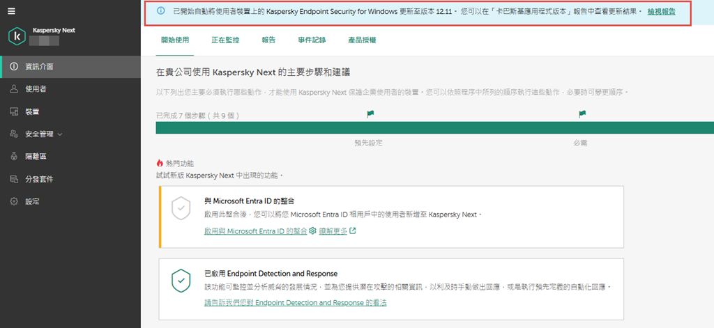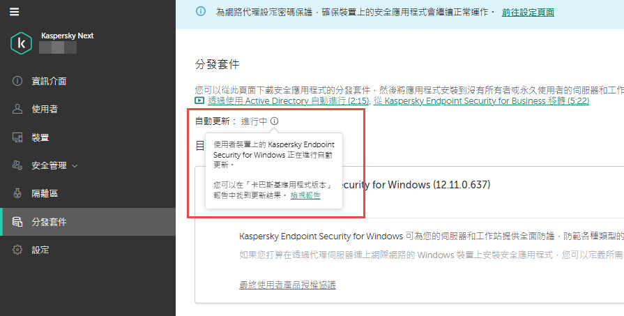 使用https://cloud.kaspersky.com/ 進行雲端主控管理的升級機制