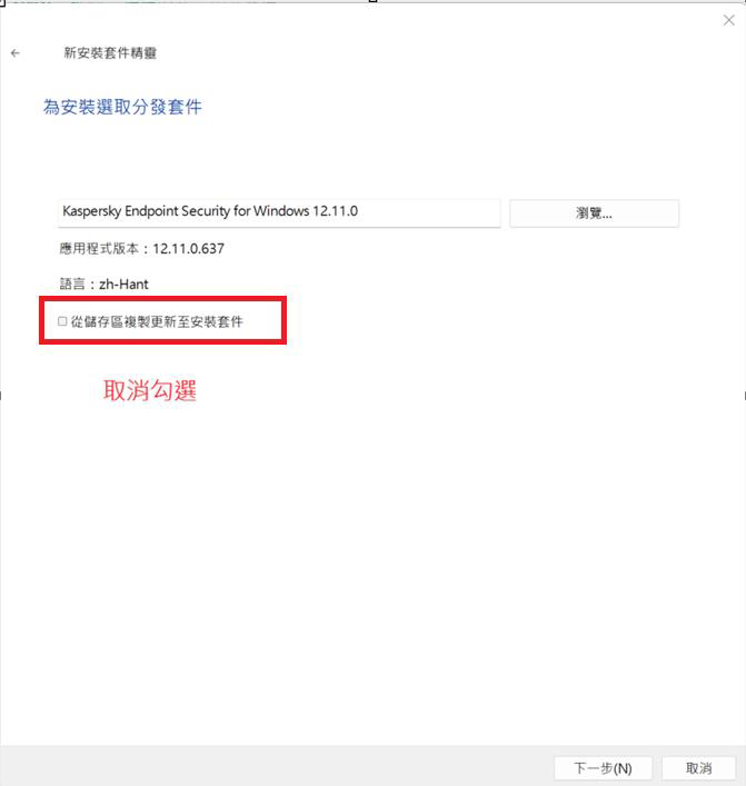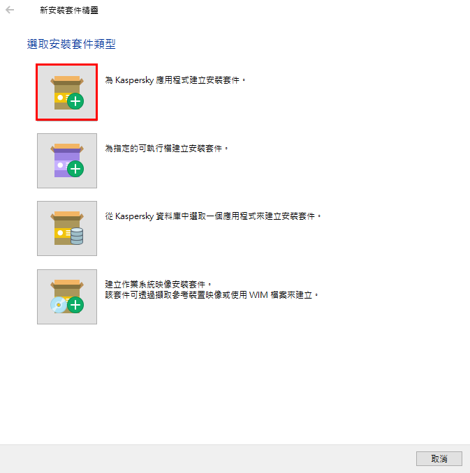 選擇「為Kaspersky應用程式選擇安裝套件」
