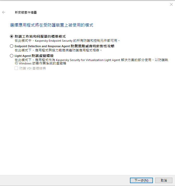 選擇應用程式在受防護裝置上被使用的模式,直接皆使用預設,並點選「下一步」。