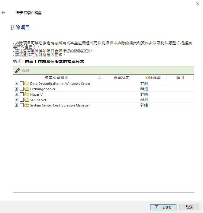 在安裝套件防護元件針對檔案伺服器請移至下方勾選「Endpoint Detection and Response Optimum」