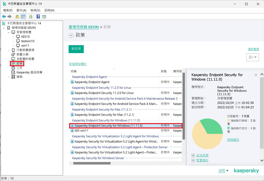建立遠端派送作業進行升級步驟前請先至KSC主控台「政策」→「KES政策」