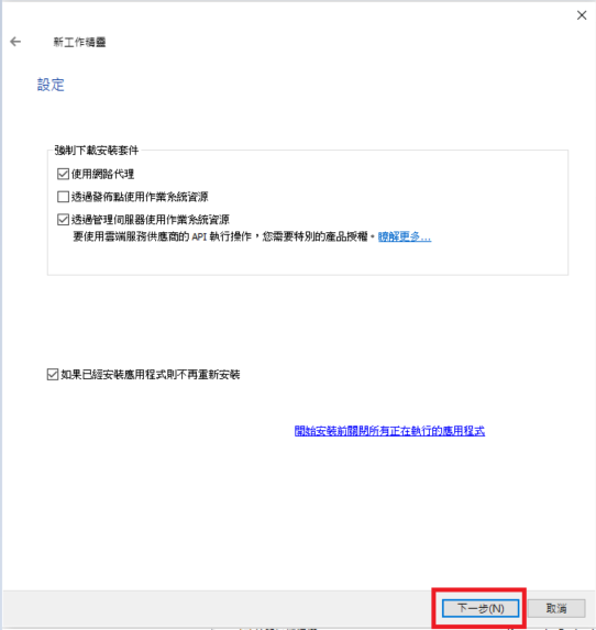 找到「遠端安裝應用程式」,點選「下一步」