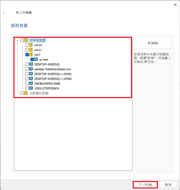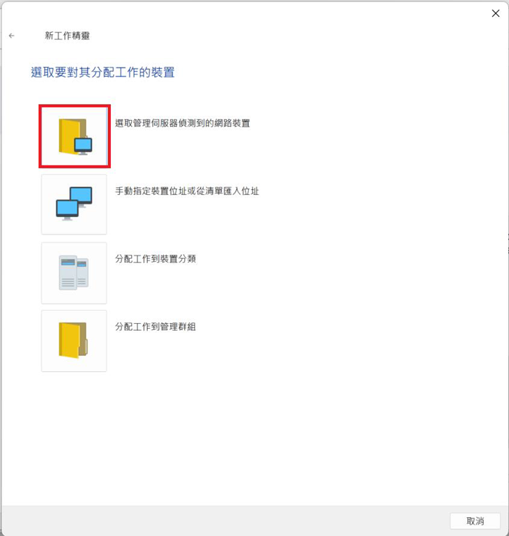 此步驟根據需求進行選擇,此處以「選取管理伺服器偵測到的網路裝置」為例。