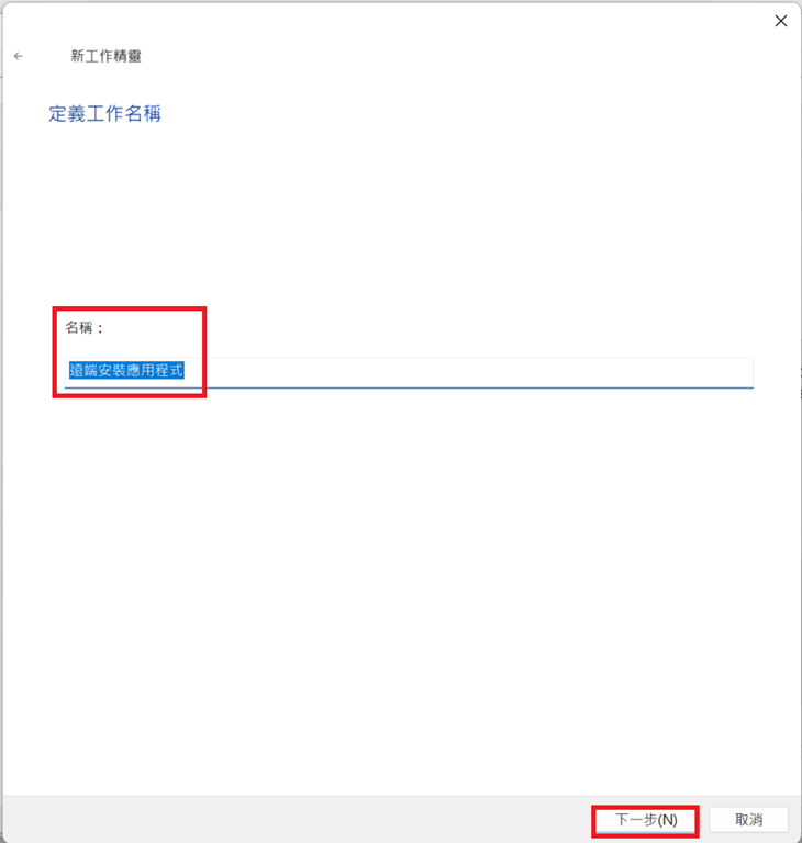 輸入方便辨識名稱,點選「下一步」。