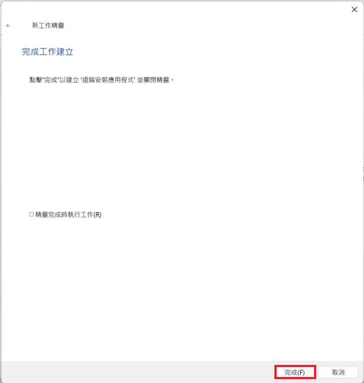 點選「完成」,完成工作建立。