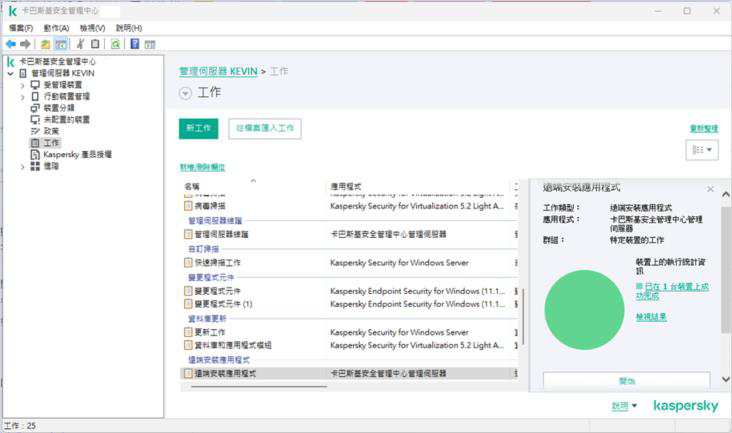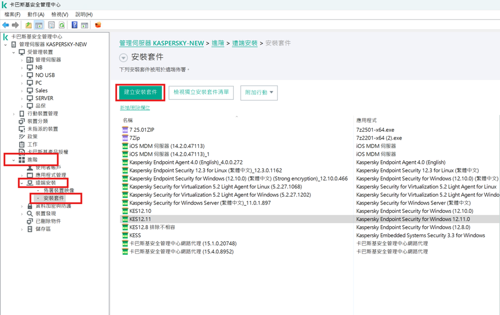 後續則可以針對上傳的KES12.11的安裝套件進行建立遠端派送工作或是打包成獨立安裝套件進行後續安裝作業。