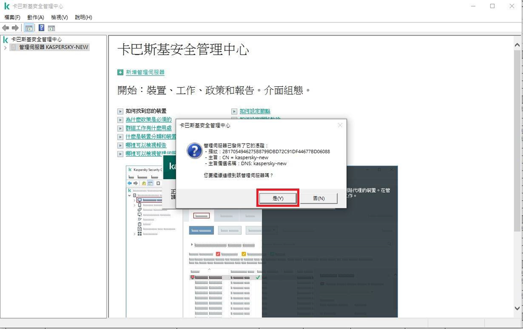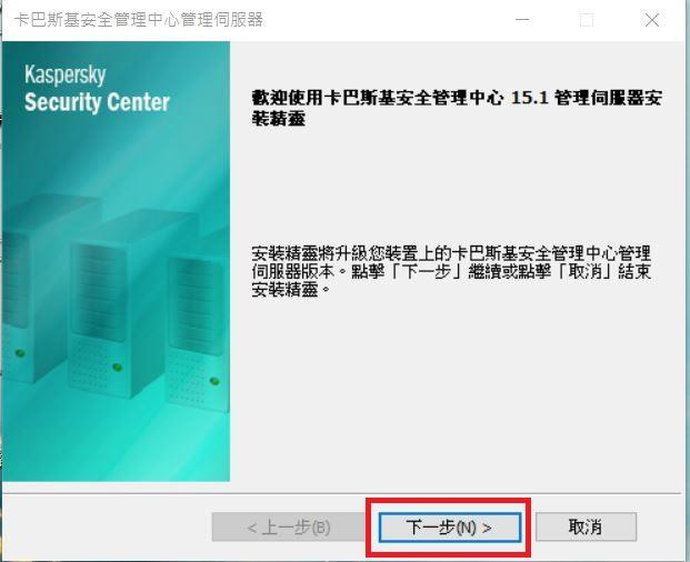 Step2.將下載後的安裝程式點選二下執行,點擊「安裝卡巴斯基安全管理中心」。
