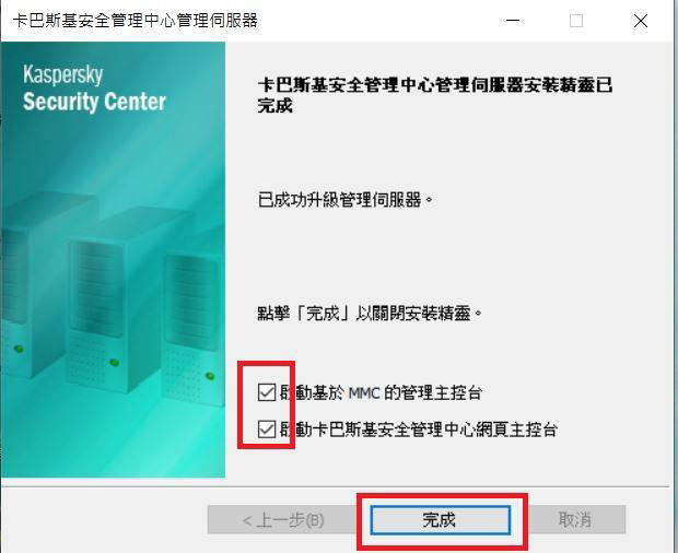 Step20.完成後可以勾選要使用什麼方式去啟動主控台,可勾選「使用MMC的管理主控台」和「使用安全管理中心網頁主控台」方式進行啟動,勾選後請點選「完成」。